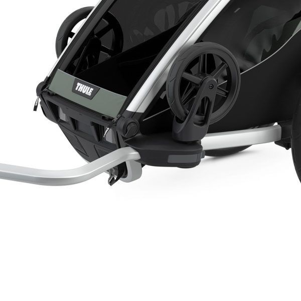 - Sustav Thule Click n’ Store – tijekom promjene aktivnosti, komplet za dječja kolica, kolica za trčanje i prikolicu za bicikl praktično se pohranjuje na samoj prikolici