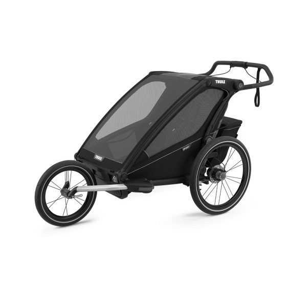 - Sustav Thule Click n’ Store – tijekom promjene aktivnosti, komplet za dječja kolica, kolica za trčanje i prikolicu za bicikl praktično se pohranjuje na samoj prikolici