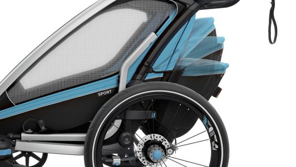 - Sustav Thule Click n’ Store – tijekom promjene aktivnosti, komplet za dječja kolica, kolica za trčanje i prikolicu za bicikl praktično se pohranjuje na samoj prikolici