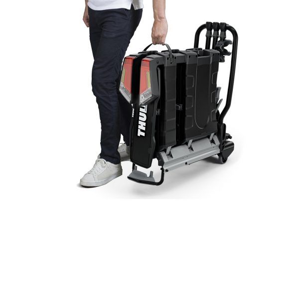 - Ergonomsko prenošenje nosača bicikla zahvaljujući ugrađenim kotačima za prijevoz i ručkama za nošenje